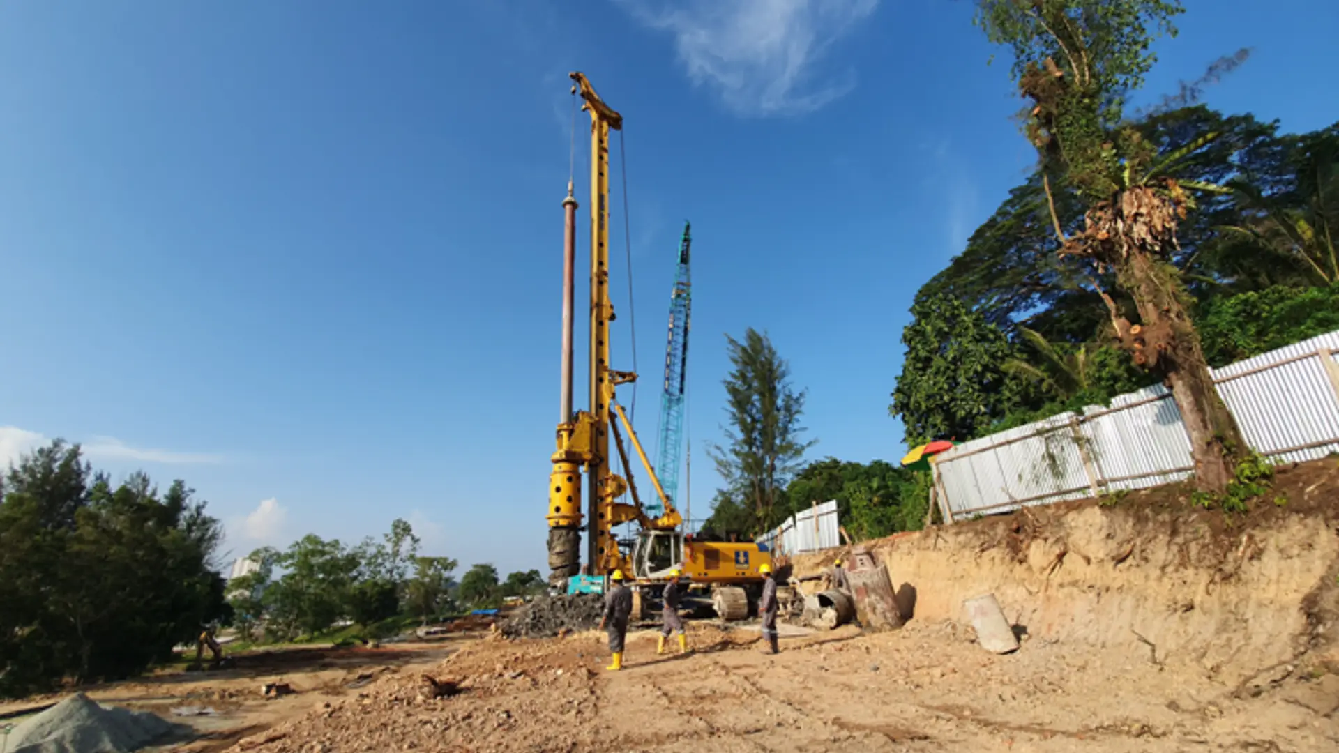 A soldier pile wall was designed to protect the unstable slope from landslide possibility that may occur again on the Jalan Yos Sudarso. The road is access to the Pertamina refinery (RDMP) in Balikpapan. The concept of the design is to make a structure to protect the slip circle area using soldier pile diameter 1180 mm as a final option from the design consultant. The Soldier pile depth is 24m from the actual ground level, and the slip circle is located 12 m below. The double-wall casing was utilized for the first 15 m below the ground to protect the shaft from sliding possibility in the slip-circle area. Further drilling was done uncased, and the shaft was stabilized using polymer slurry. BAUER used 1 unit BG 28, and works were carried out on a 24-hour basis with two shifts.