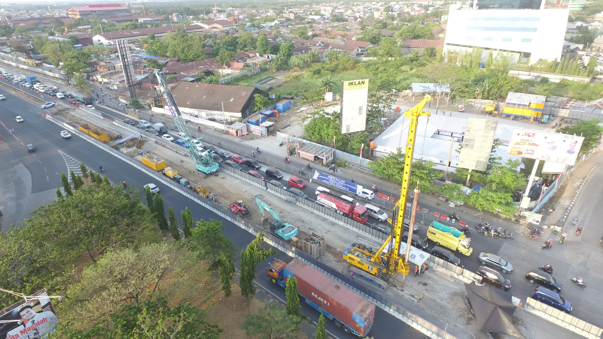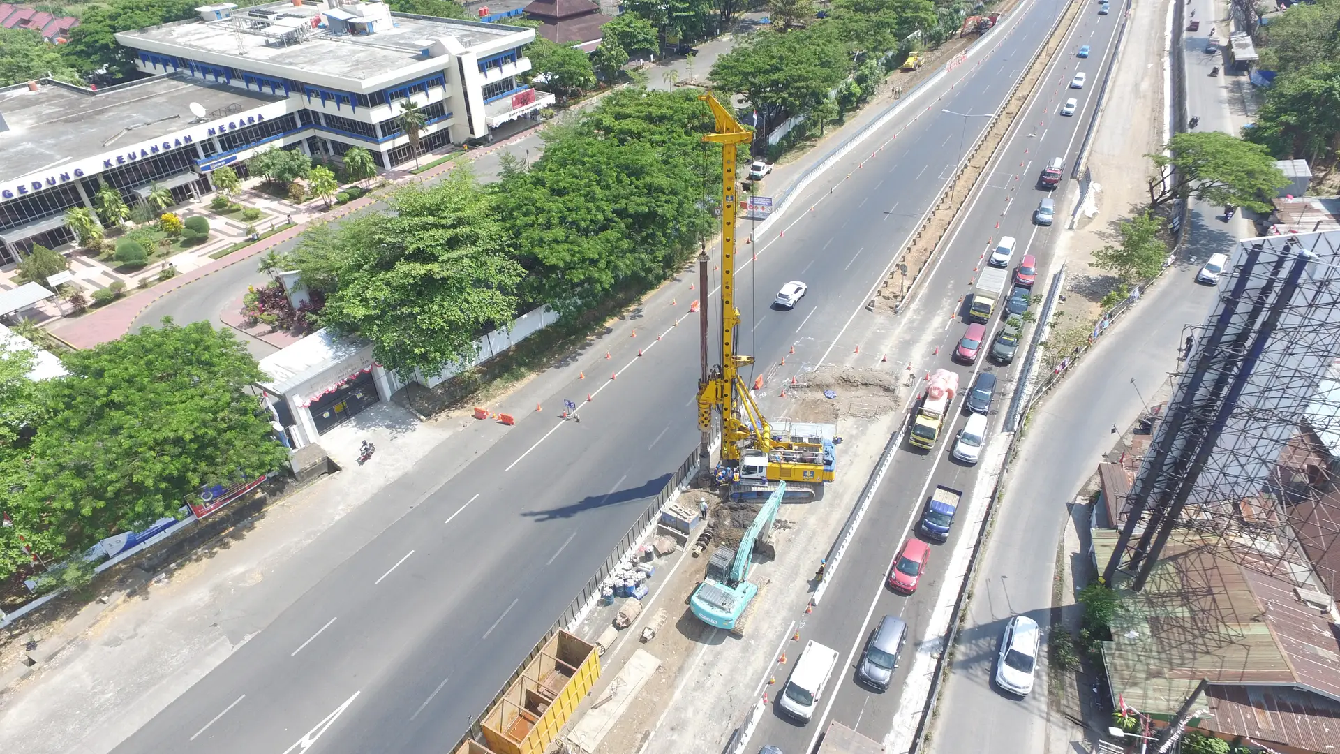 The A.P Pettarani toll road is located in the city of Makassar and is the first elevated toll road in East Indonesia, making it one of the strategic projects for the country. The entire construction will connect the port of Makassar with Hassanudin Airport and the district of Gowa. The toll road will have a length of 4.5 km - consisting of 74 piers and two on and two off ramps. The bored piles have a diameter of 800 mm, 1000 mm and 1200 mm and are up to 25 m long. As the project is located in the middle of the city of Makassar, the logistics posed a special challenge. However, this was no problem for our experts from Bauer Indonesia.