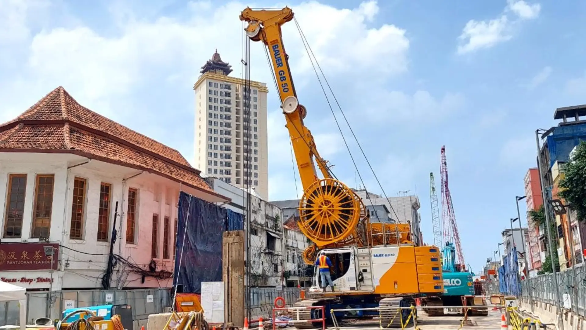 In the pulsating metropolis of Jakarta, history is being written: Our experts from Bauer Spezialtiefbau played a key role in the construction of the first subway line in Jakarta, Indonesia. For the Kota Station, 136 diaphragm wall elements were installed over a length of 867 m and up to a depth of 43 m. Work was executed on a confined site between two busy main streets and historical buildings, including the Pantjoran Tea House just three meters away. Despite difficult soil conditions and limited available space, the project was concluded successfully in June 2023.