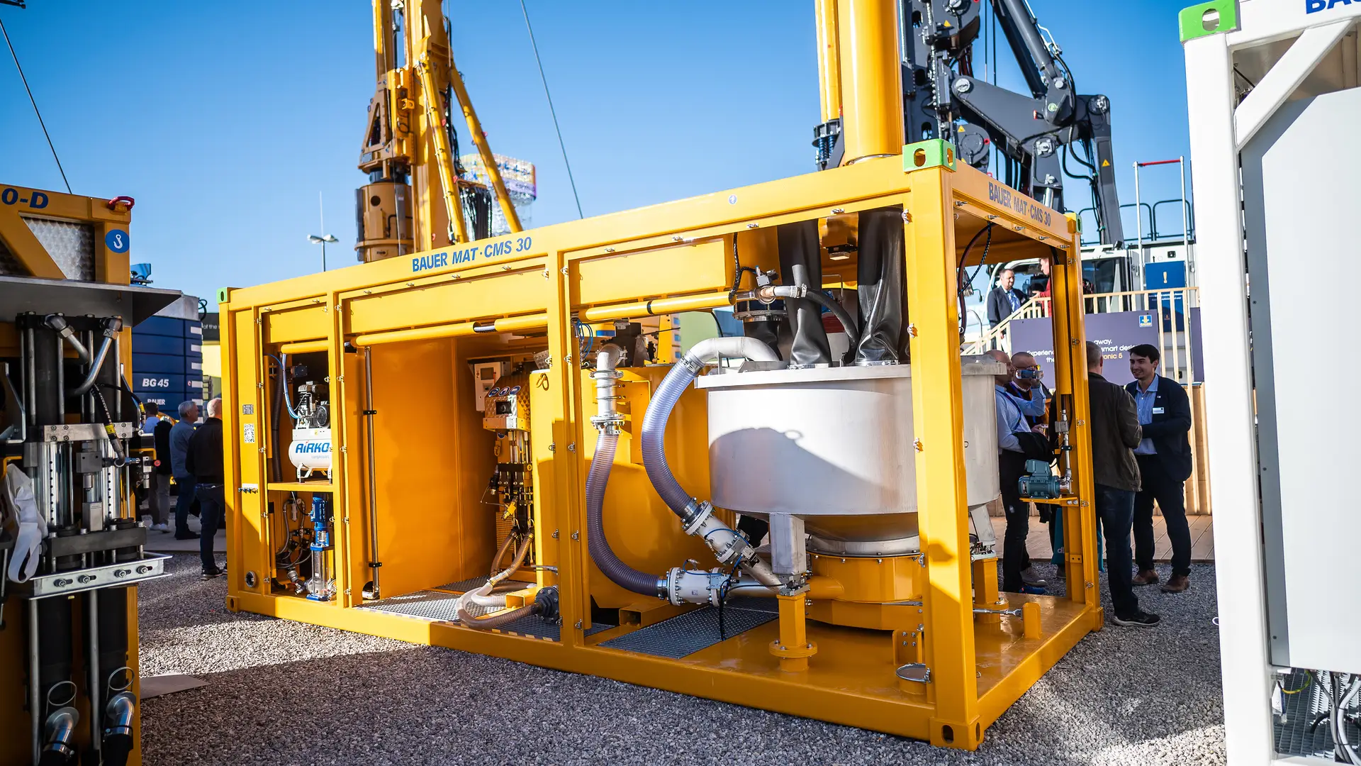 On November 1, 2019, the BAUER Group acquired Mühlhäuser-Obermann GmbH. Under the new name Obermann MAT GmbH, this company has since expanded the MAT portfolio with injection and grouting pumps, mixers and HDI pumps. One example of the successful combination of these two technologies is the IPA 250-E injection plant, which premiered at the bauma 2025. A new ring exchange method for rotors on decanter centrifuges was also unveiled. This replacement with an overhauled rotor considerably shortens the time-intensive and costly rotor maintenance. The advantage for customers is that the downtime of their decanter due to maintenance is reduced by weeks. With the CMS 50, Bauer MAT presented the next generation of its mixing technology.